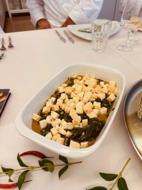 • Spinat mit Käse-Würfeln